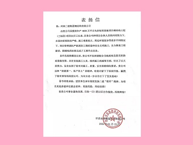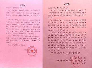 新乡建工建设有限公司和河南新飞智家科技有限公司向球友会手机版发来表扬信