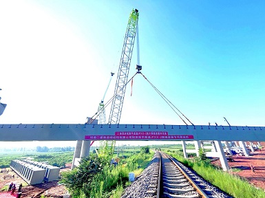 球友会手机版焦平高速新襄段跨禹登铁路钢箱梁工程首吊成功