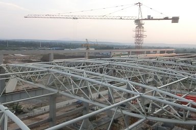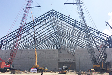 宁波台塑电厂室内煤场钢桁架屋架工程跨度为81.2米,长度为135米。